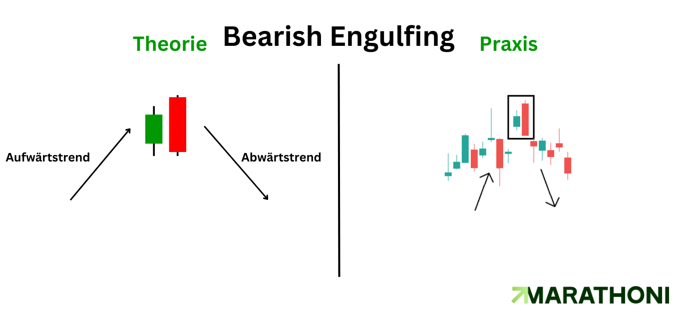 Ähnliche Muster: Die Engulfing-Muster, ja es gibt zwei, gelten als eines der stärksten Umkehrmuster. Das Bearish Engulfing ist damit das zweite Muster und sagt genau das Gegenteil aus.