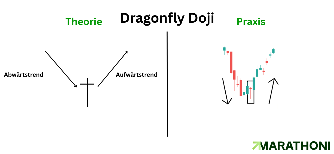 Wichtig: Sollte die darauffolgende Kerze über dem Dragonfly Doji schließen, ist das ein Zeichen von weiterer Stärke.