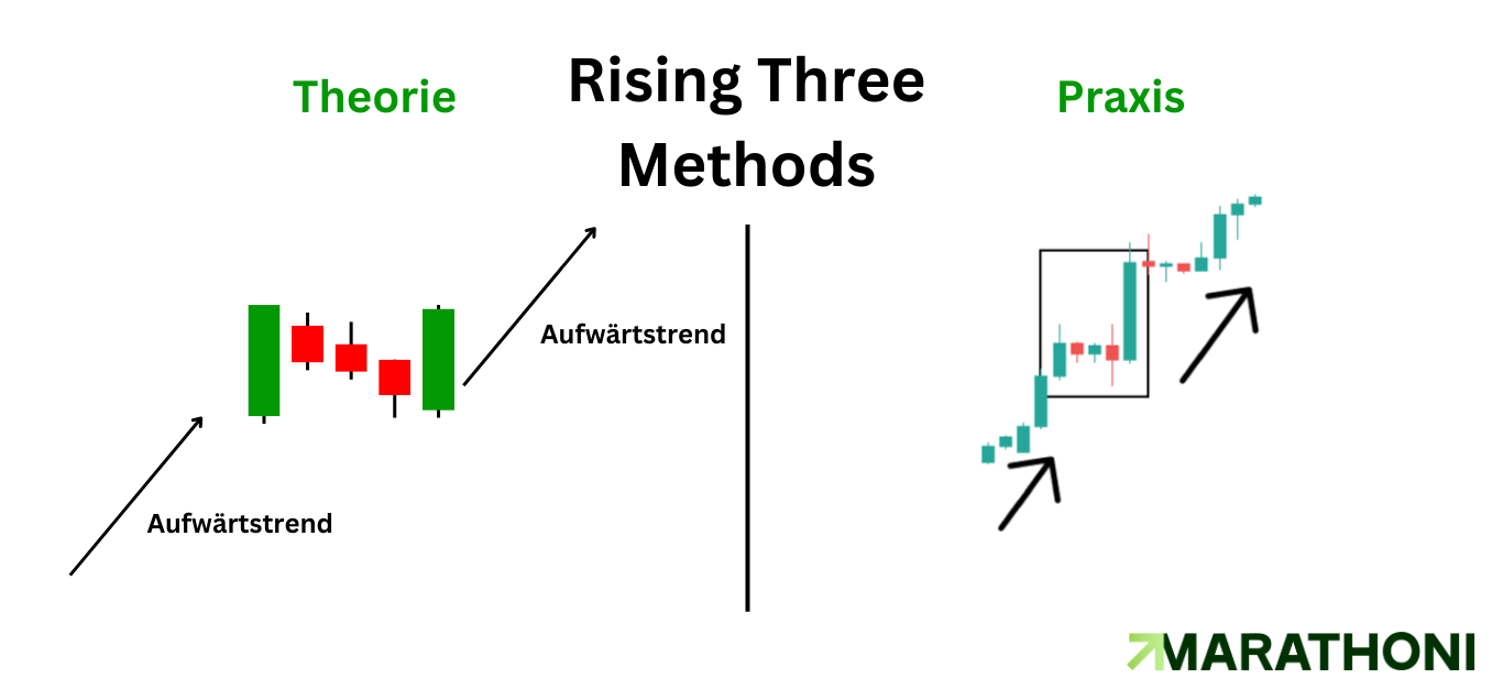 Interpretation: Das Muster zeigt Stärke im Markt. Durch die kleinen Korrekturen, die danach mit einer starken Kerze gekauft werden, steht das für die Fortsetzung des Aufwärtstrends.